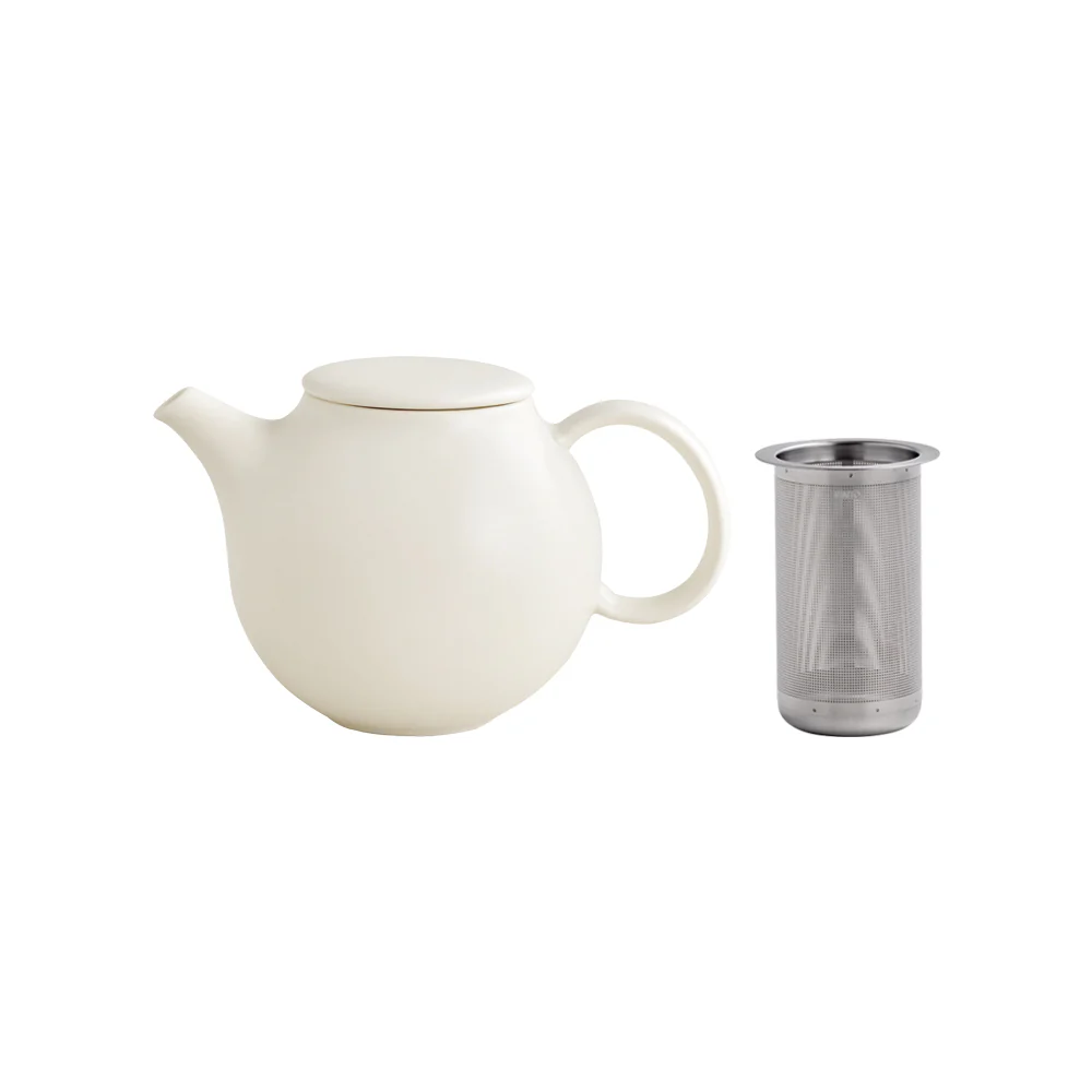 Teekanne Pebble des japanischen Herstellers KINTO. Die schlichte runde Form, die glatte Textur und die leichten Unebenheiten der Glasur machen die Schönheit dieser Kollektion aus. Die Teekanne wird einem passenden Filter aus Edelstahl geliefert.
