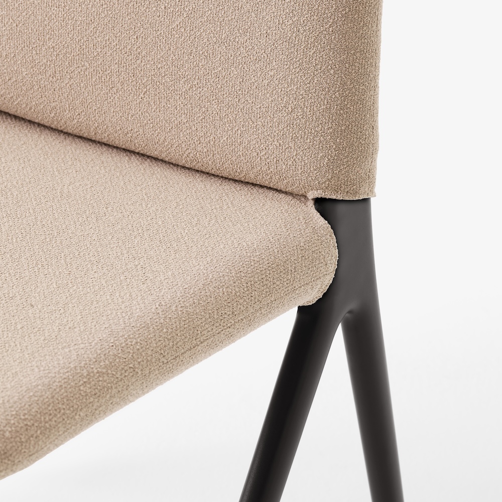 Nachhaltigkeit bildet die Grundlage des Designs: Der Kape Chair basiert auf einer freischwingenden K-Struktur, bei der Funktion, Komfort und Langlebigkeit sichtbar in die Form integriert sind. Die Konstruktion ermöglicht eine flexible und komfortable Polsteraufnahme – durchdacht bis ins Detail.